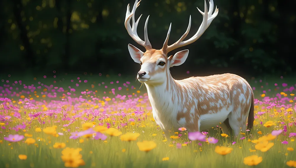 deer flowers field